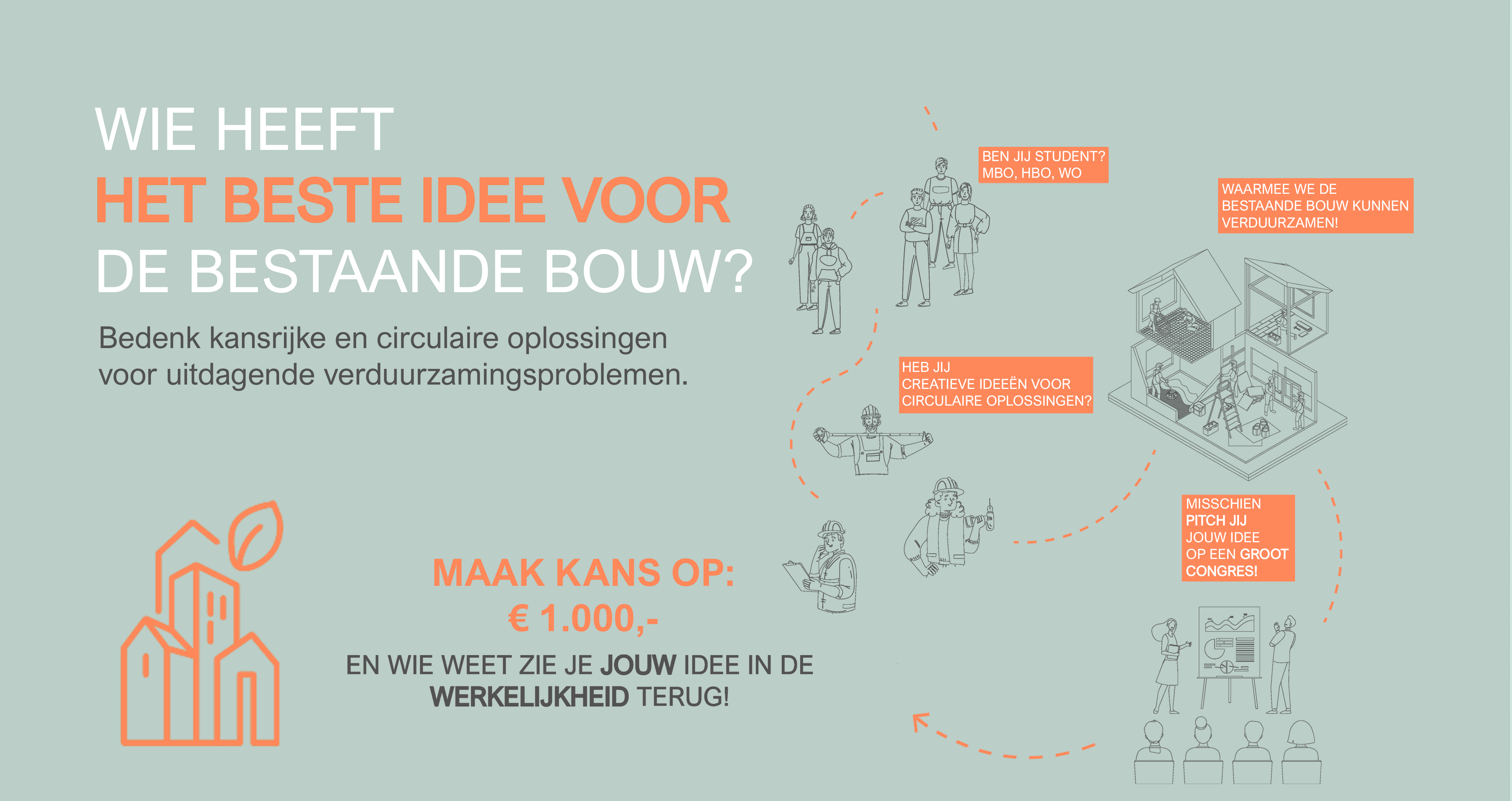 Ben jij een student met een passie voor verduurzaming en innovatie en heb je een briljant idee voor de verduurzaming van bestaande woningbouw? Dan is dit jouw kans.